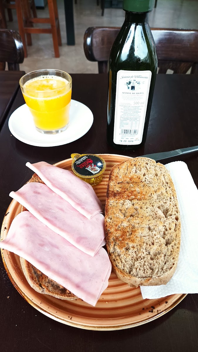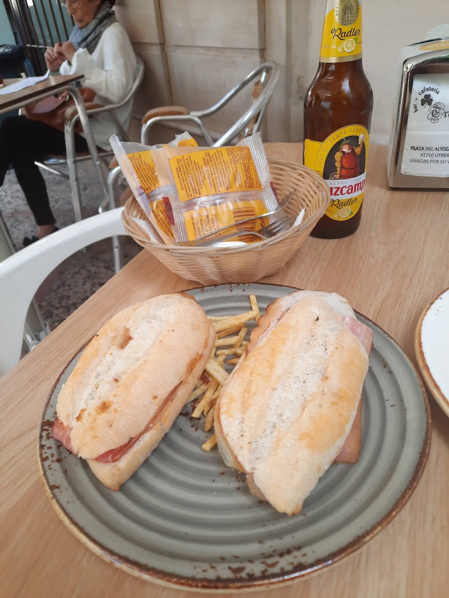 Bar Cafetería Trebol'l sits quietly on Plaza del Altozano in Utrera, offering a straightforward spot to enjoy a coffee or a casual breakfast. Its main draw is the simple, no-fuss Andalusian-style breakfast featuring wholegrain options paired with natural juice and ham—an uncomplicated but satisfying way to start the day. The café’s terrace faces a small square with some greenery, lending a relaxed, local feel despite being near a moderately busy street.